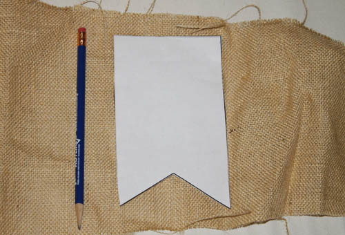 1. Cut out the template pieces and then trace the bunting pattern onto the burlap eight times.
