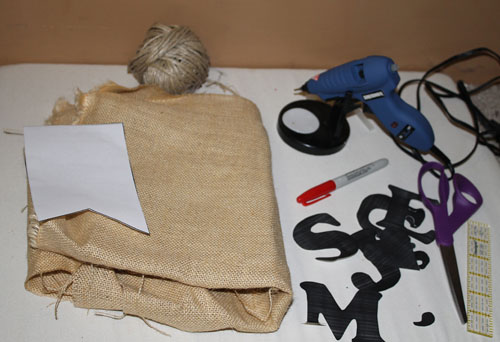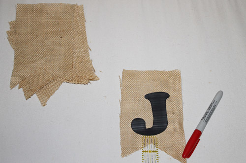3. Trace the letters onto the burlap pieces. It is helpful to use a ruler to make sure your letters are all evenly lined up.