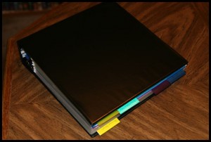 Purchase (or find in your home) a three ring binder.  If you have a lot of recipes or you know you’ll want to add more as time goes on, consider getting a large binder.  Because I knew I had a lot of recipes and I knew that I wanted to use page protectors, I picked a 3-inch binder.